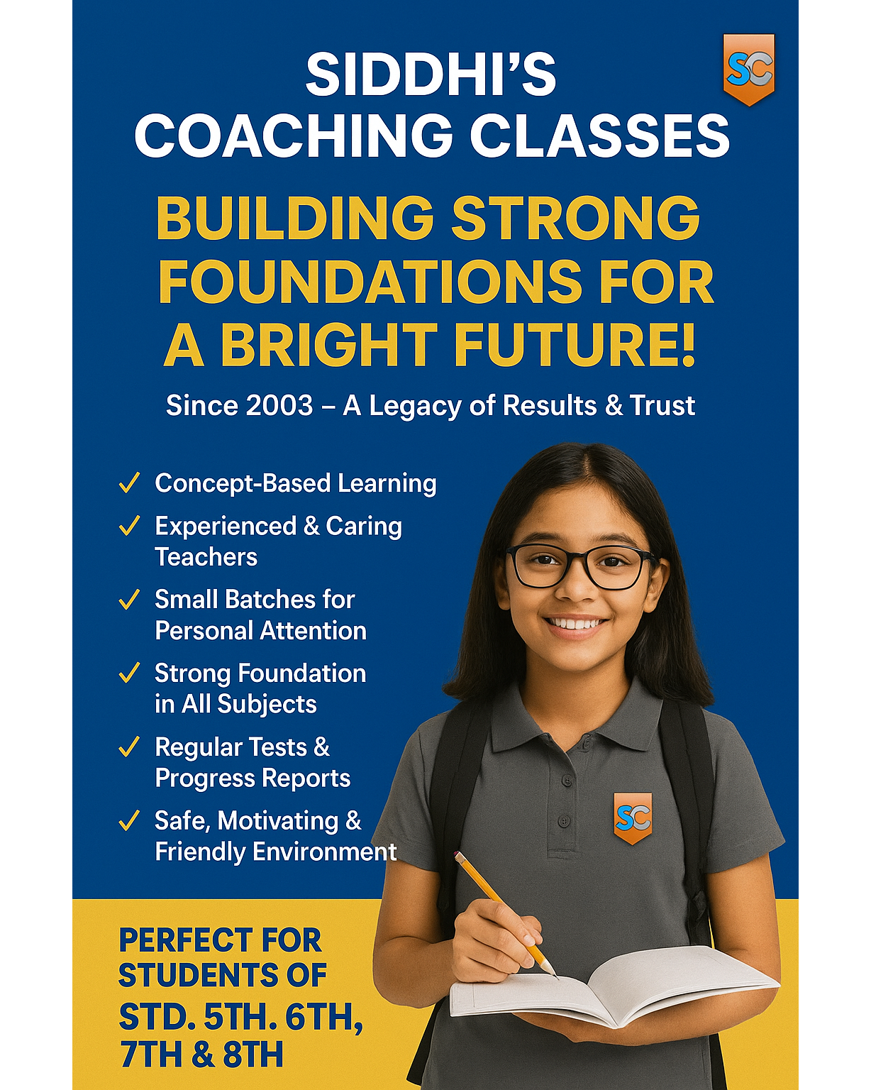 Siddhi’s Coaching Classes is one of the best classes in Shell Colony, Chembur, known for providing a focused, disciplined, and result-oriented learning environment for students from Std. 5th to 8th. For over two decades, we have been committed to helping children build strong academic foundations that support long-term success. Our approach emphasises conceptual clarity, continuous practice, and personalised guidance so that every student develops confidence and performs to the best of their abilities. Why Siddhi’s Coaching Classes is trusted by parents in Shell Colony, Chembur: • Concept-based teaching that allows students to fully understand subjects rather than memorise answers. • Experienced teachers who explain topics in a simple, structured, and interactive manner. • Small batches that ensure every child receives individual attention and support. • Well-planned teaching schedule covering Maths, Science, English, and other essential subjects with equal focus. • Regular tests and progress reports that help track improvement and keep parents informed. • Special attention to weak areas, ensuring every child receives guidance tailored to their needs. • A positive and motivating classroom environment that encourages students to ask questions, stay curious, and learn consistently. • Over 20 years of trust built through dedication, discipline, and consistent academic improvement. Ideal for Students of Std. 5th, 6th, 7th, and 8th Our goal is to strengthen basics, improve problem-solving skills, enhance writing ability, and prepare students for higher classes with confidence. We believe that strong foundations in the middle-school years lead to success in the future, whether in higher education or competitive streams. Parents looking for the best classes in Shell Colony, Chembur for their child’s academic growth will find Siddhi’s Coaching Classes to be a reliable and effective choice dedicated to quality education and student success.
